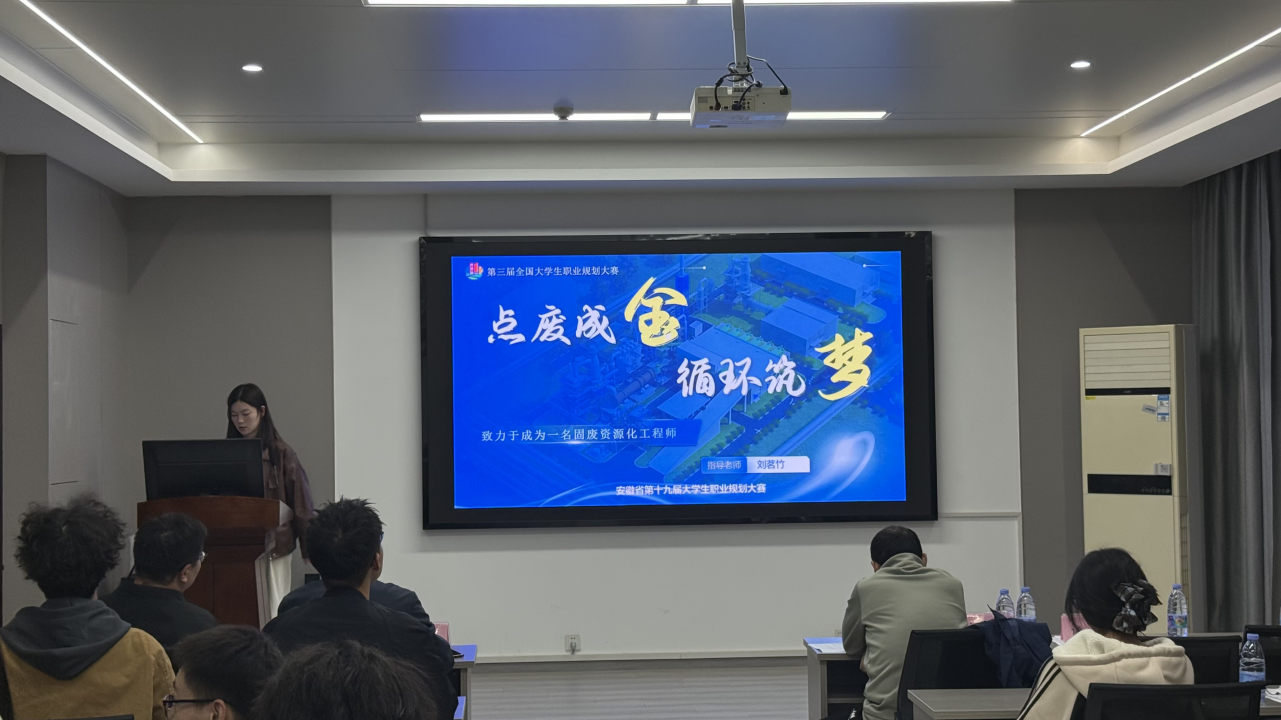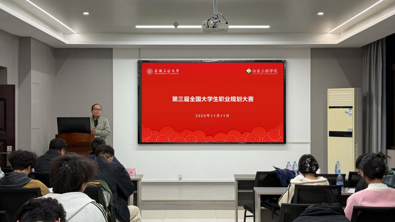 于冶金楼南302成功举办大学生职业规划大赛。校学工部就业创业指导科科长蔚德磊出席活动并担任评委。