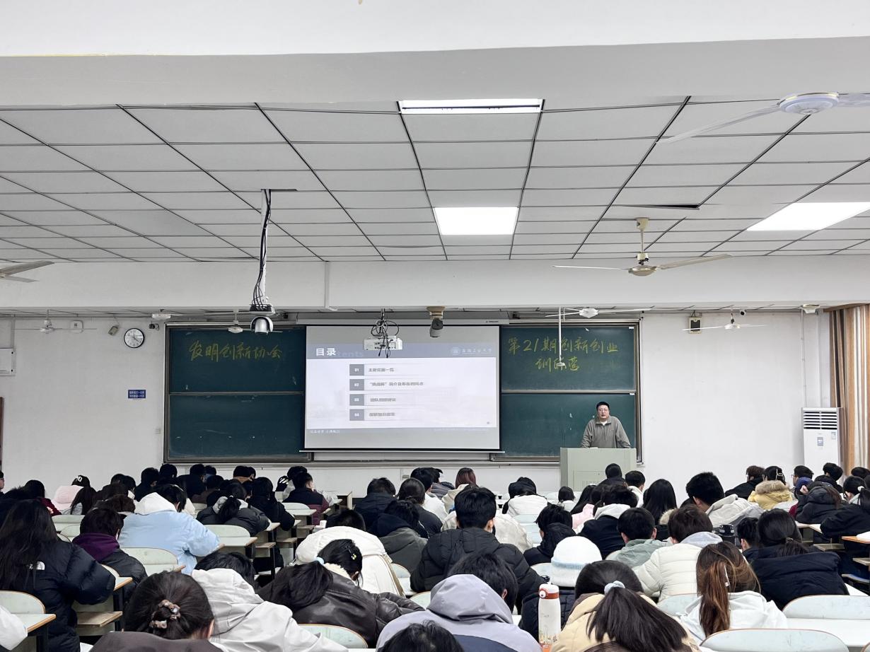 第21期创新创业训练营开营仪式暨首场专题讲座在佳山校区教三南401教室顺利举行。院团委书记、发明创新协会指导老师张夏主持活动并作动员讲话,300余名同学共同参加了本次活动。
