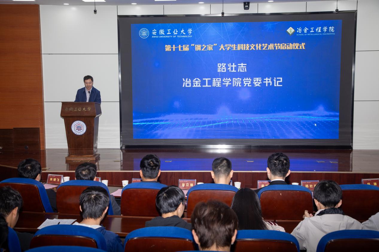 在秀山校区振华图书馆大明报告厅举行第十七届“钢之家”大学生科技文化艺术节启动仪式暨2025年度“钢之家”奖学金颁奖仪式。上海钢之家信息科技有限公司高级副总裁吴运豪、安徽钢之家电子商务有限公司副总经理杜郑、上海钢之家信息科技有限公司国际部主管杨珊、院领导、各系负责人及师生代表参加了本次活动。
