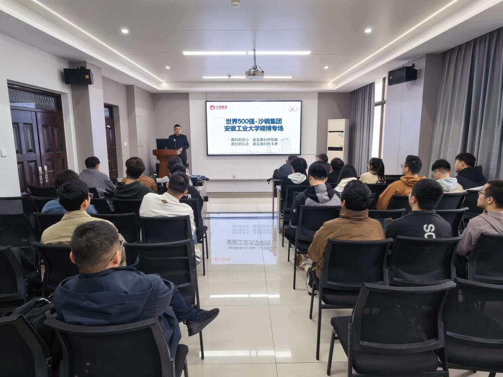 宣讲环节,张修成通过宣传片、PPT展示等形式,详细介绍了沙钢集团的发展历程、产业布局、技术创新成果以及本次招聘的岗位需求、薪资待遇及职业发展路径等。在随后的面试环节,同学们围绕工作环境、专业适配度、成长方向等与招聘人员进行了深入交流。现场气氛热烈,多名毕业生与沙钢集团达成签约意向。